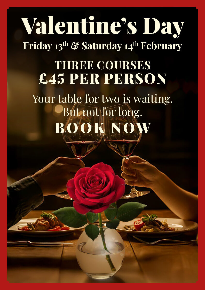 Make this Valentine’s Day one to remember by joining us for a delicious meal in a warm, welcoming setting. Whether you’re celebrating a romantic evening for two or simply enjoying great food with someone special, our carefully crafted dishes and relaxed atmosphere set the perfect scene. Sit back, savour every bite, and let us take care of the rest while you enjoy quality time together.